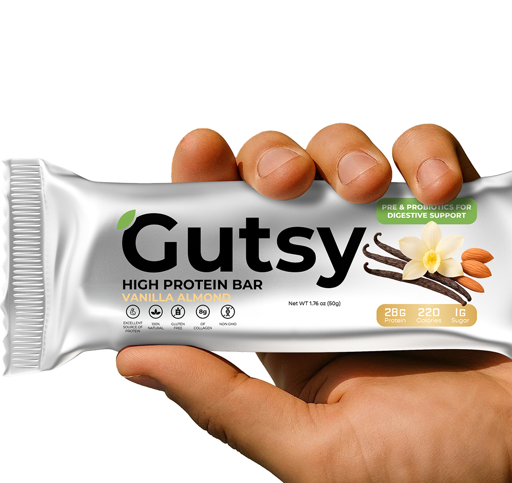 Most bars focus only on protein. Gutsy delivers 28g protein plus probiotics, prebiotic fiber, and fermented ingredients - so you get strength, energy, and digestion support all in one.